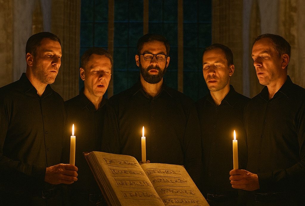 Chœur grégorien de l’Abbaye de La Lucerne — Sous la direction du Père Guillaume Antoine, recteur de l’abbaye, le chœur vit le chant grégorien au cœur de la liturgie quotidienne. Formés par la pratique régulière des offices, les chantres incarnent une tradition séculaire où la mémoire et l’intériorité remplacent la partition.